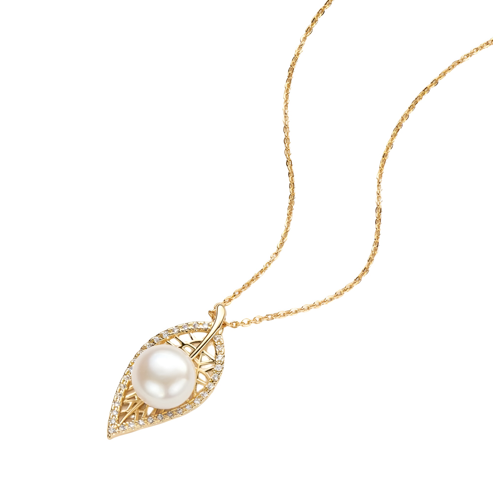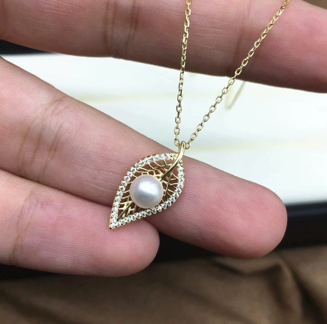A necklace should speak for itself, not just shine. A delicate hint of femininity, nature, and sophisticated beauty can be found in our Freshwater Pearl Pendant Necklace with Moissanite and 14K Gold Leaf Detail. This necklace offers a stunning final touch that never feels excessive, whether you’re a bride walking down the aisle or getting dressed up for a Friday dinner.