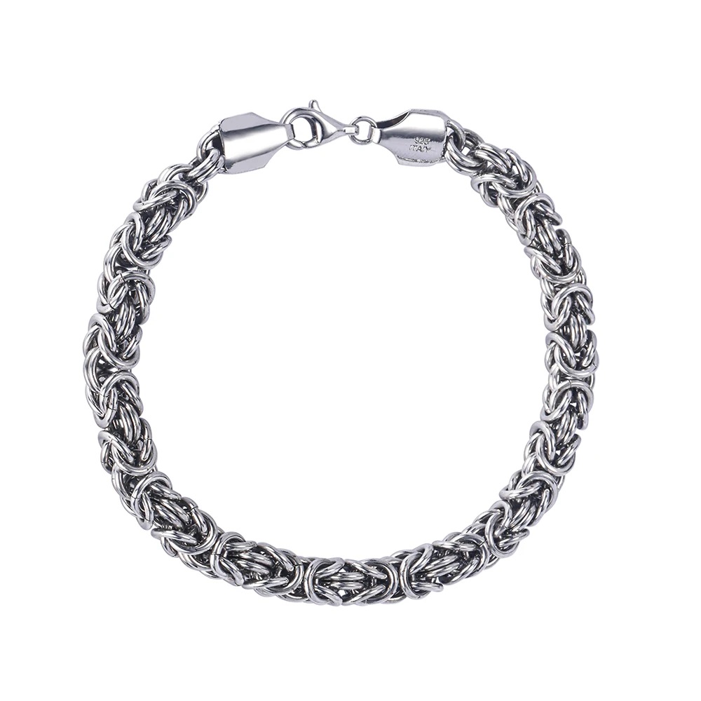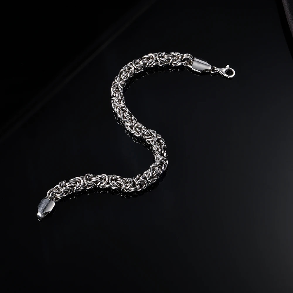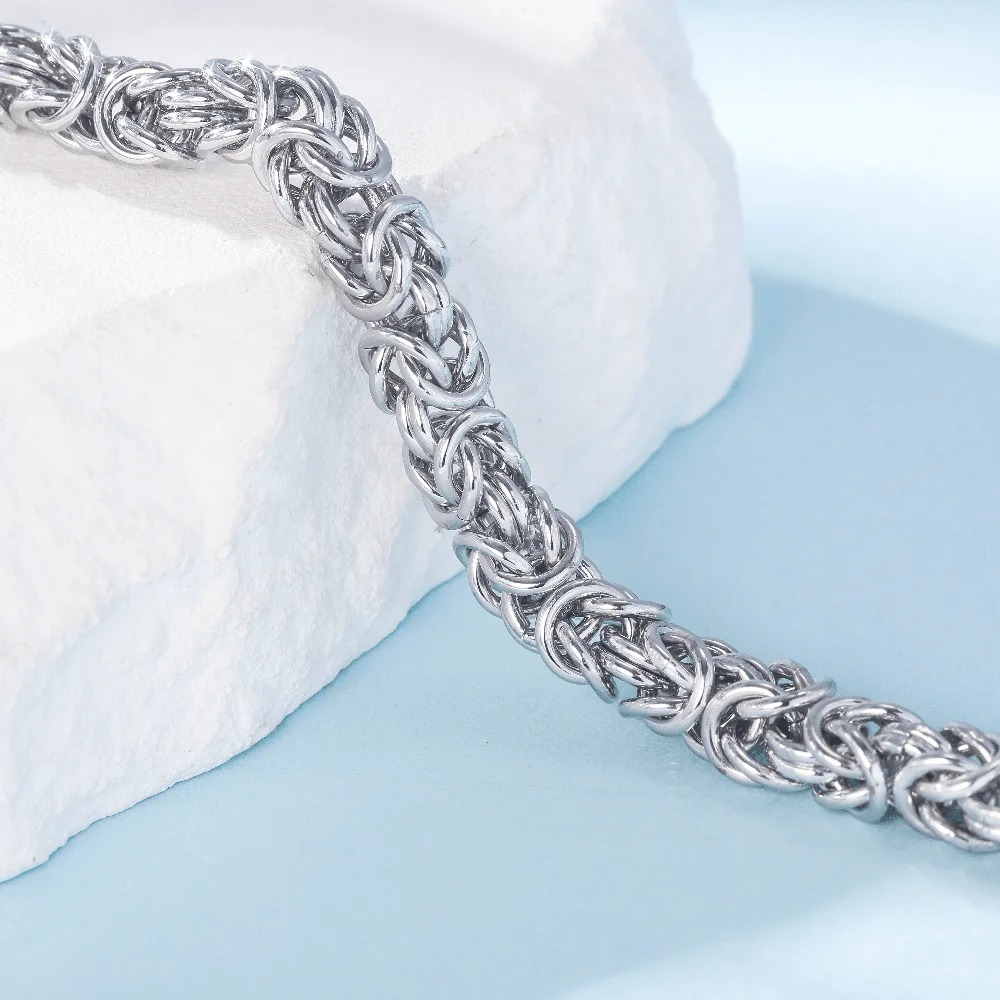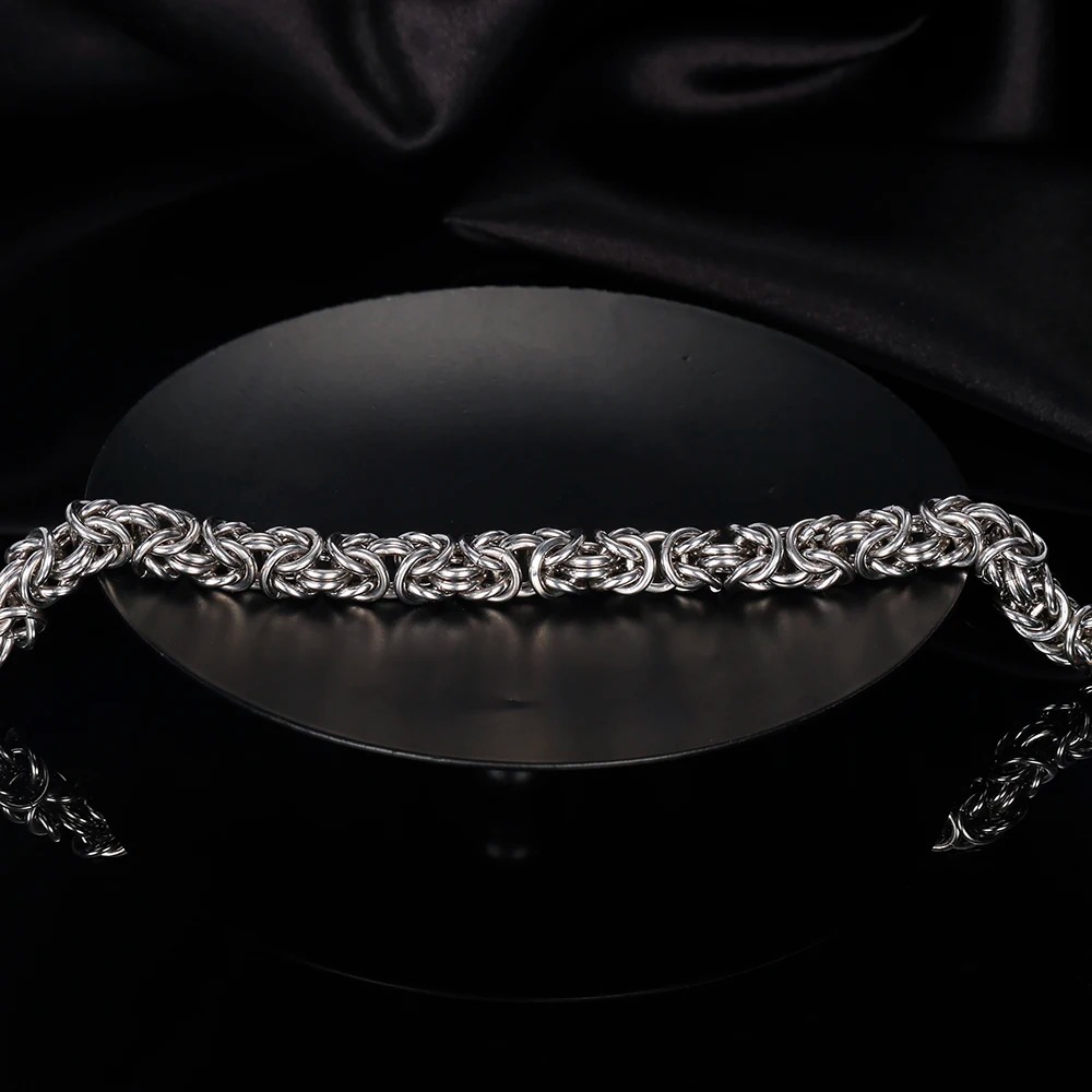 With our Italian Byzantine Silver Bracelet, you may enter the splendor of Italy. Precision-woven and brilliantly polished, this item exudes sophistication. Its dimensions of 6.8 mm in width and 4 mm in thickness provide the ideal mix between being striking enough to draw attention and being understated enough to go with any ensemble.